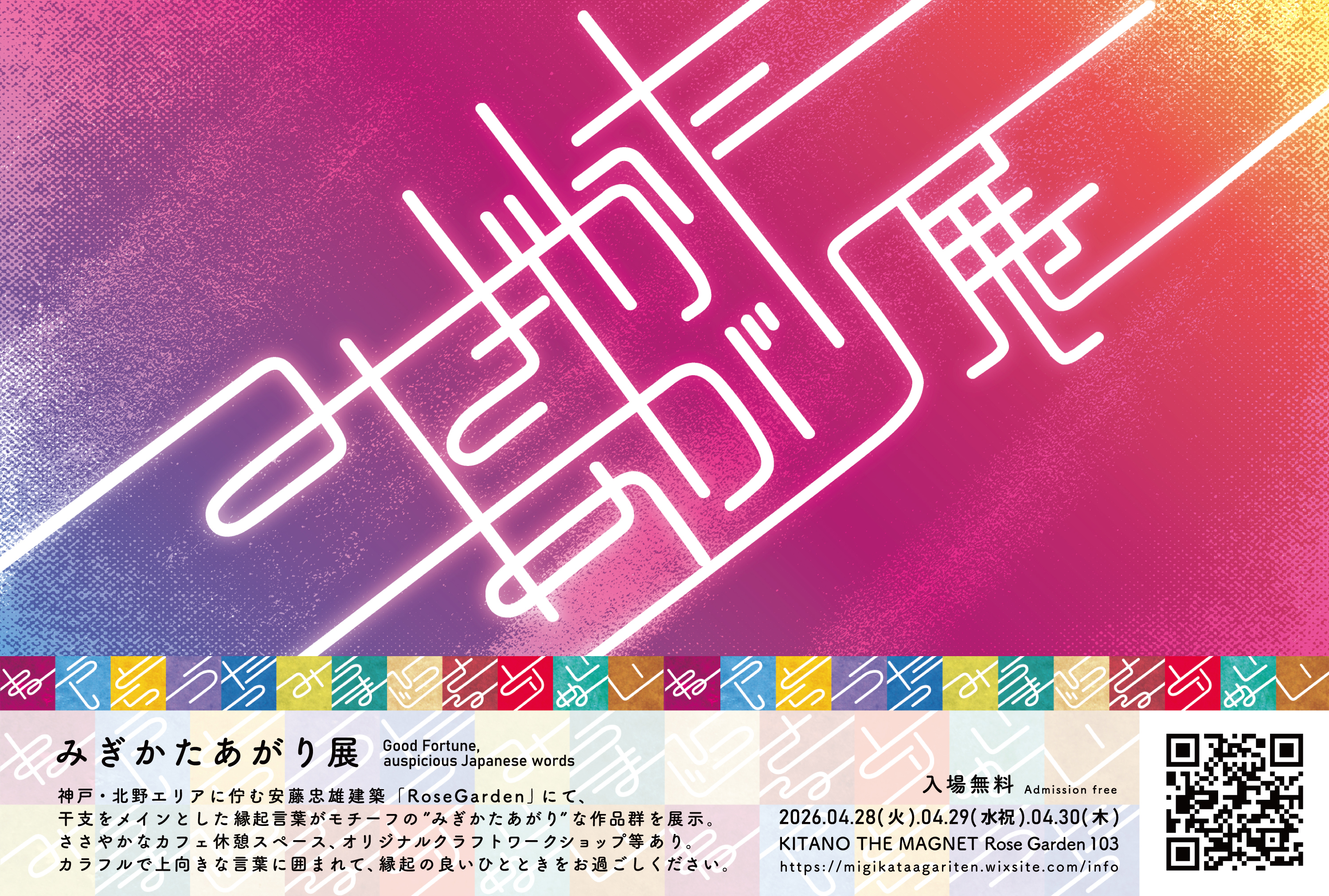 カラフルで上向きな言葉たちに囲まれて、“みぎかたあがり”な縁起の良いひとときをお過ごしください。